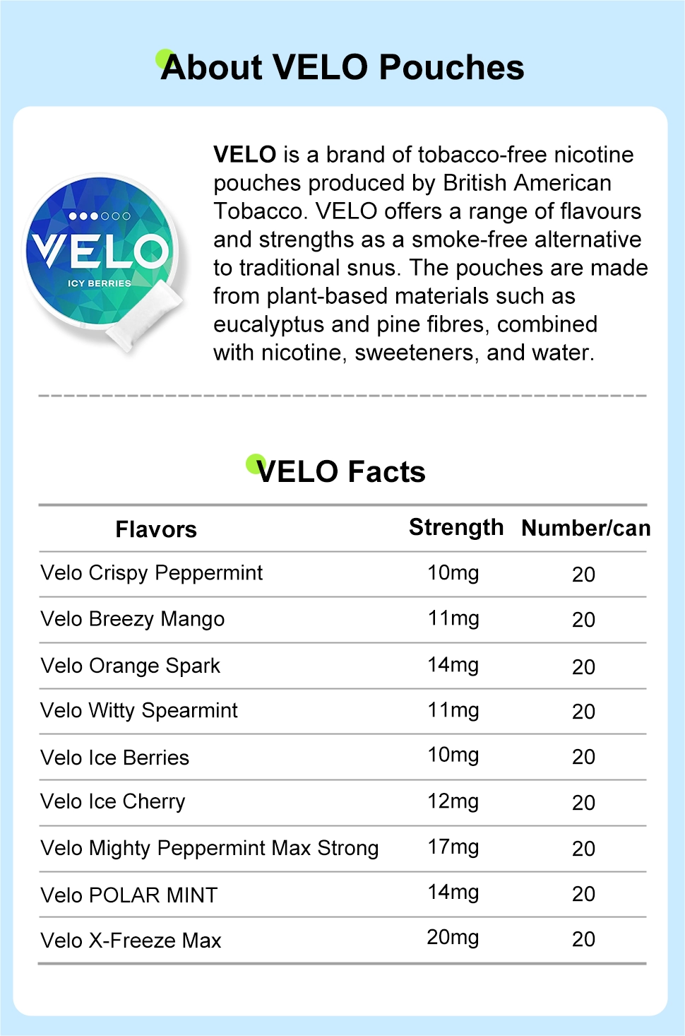 European well-known brand VELO Pouches -All Flavors